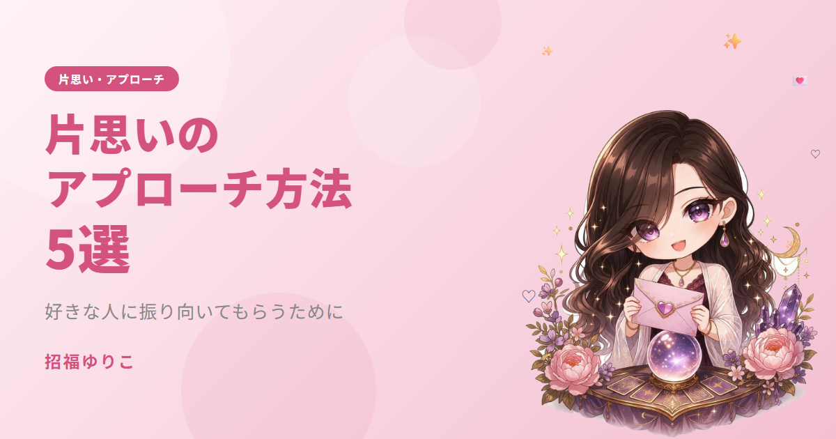 この記事では、片思い中の女性が今日から実践できるアプローチ方法を5つ、恋愛占い師ゆりこが男性心理を踏まえて解説します。