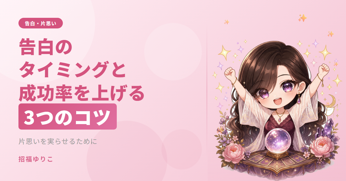 この記事では、告白が成功しやすいタイミングと、成功率を上げる3つのコツを恋愛占い師ゆりこが解説します。